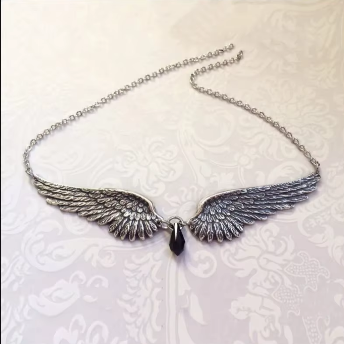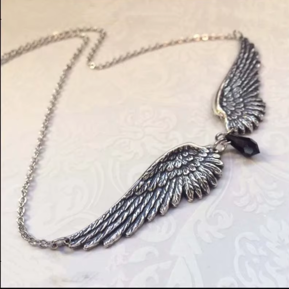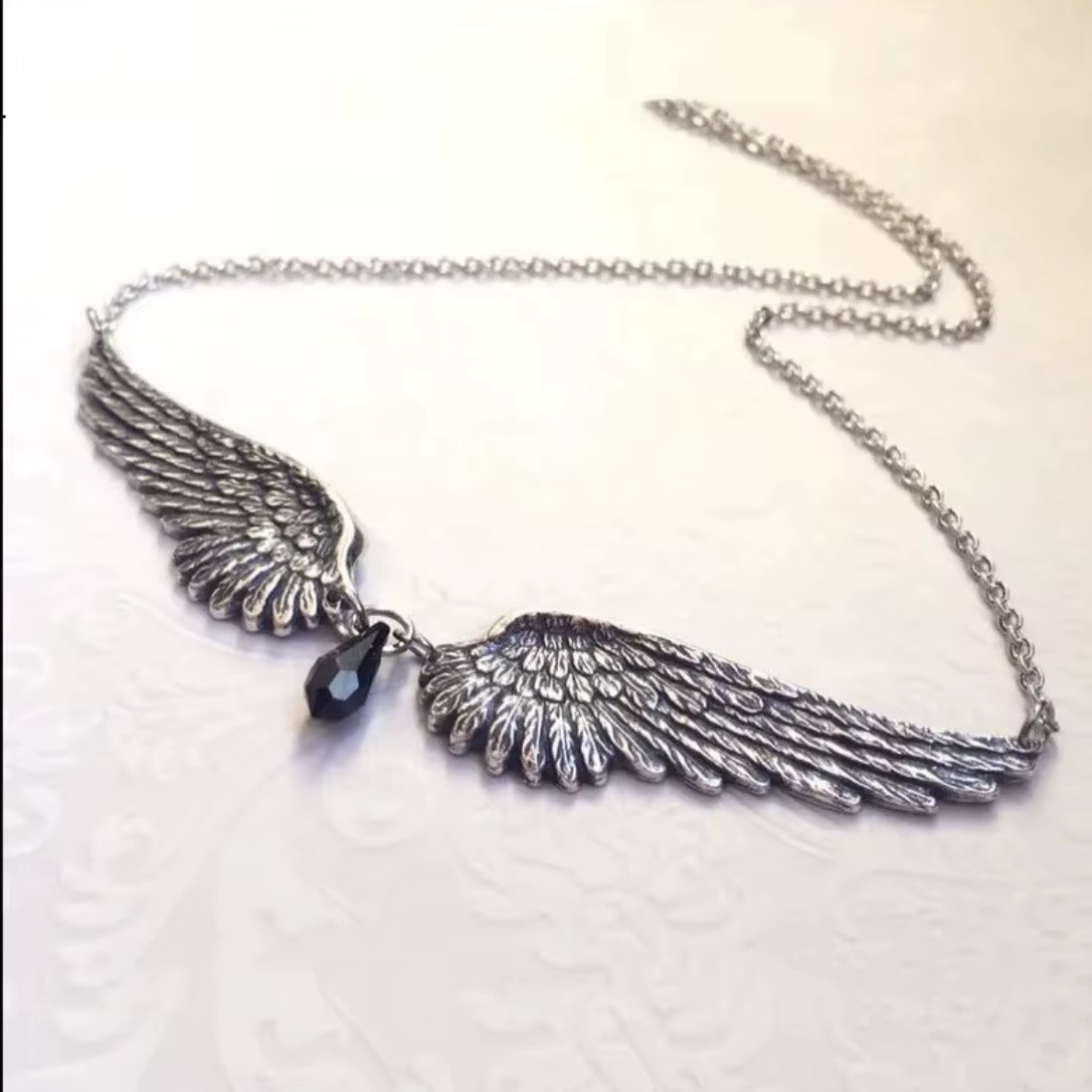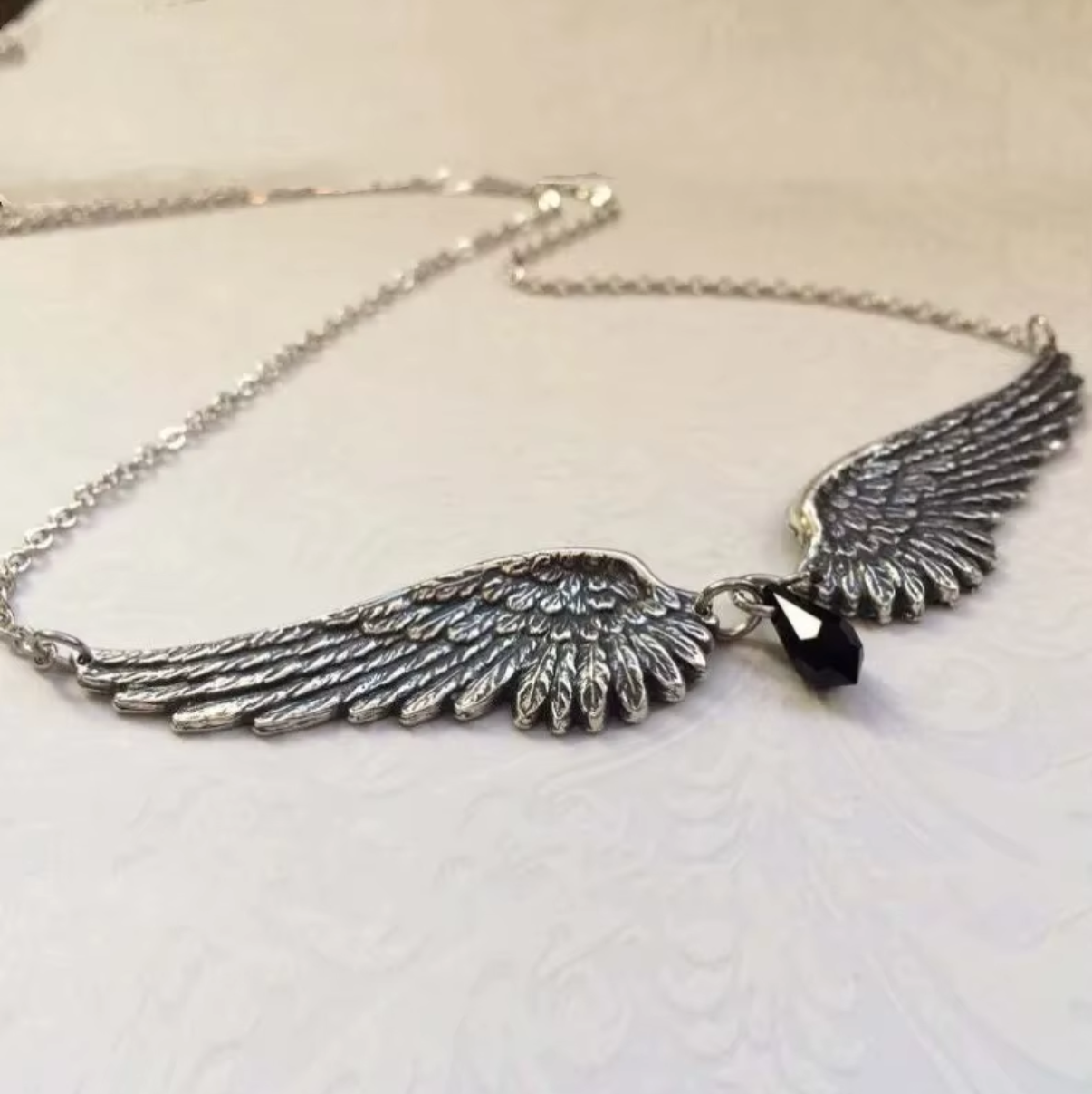"Anielska Tarcza" – Naszyjnik ze Skrzydłami Anioła i Czarnym Koralikiem