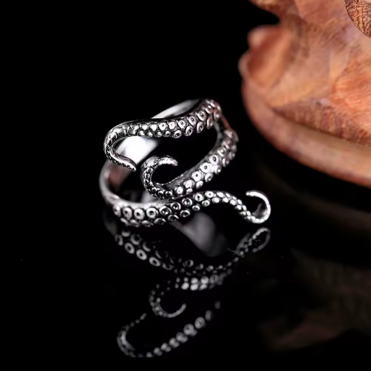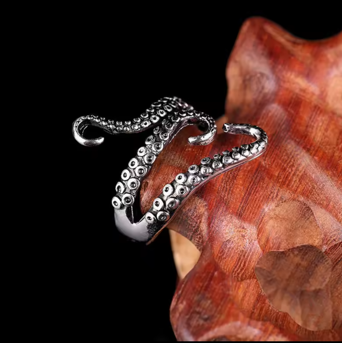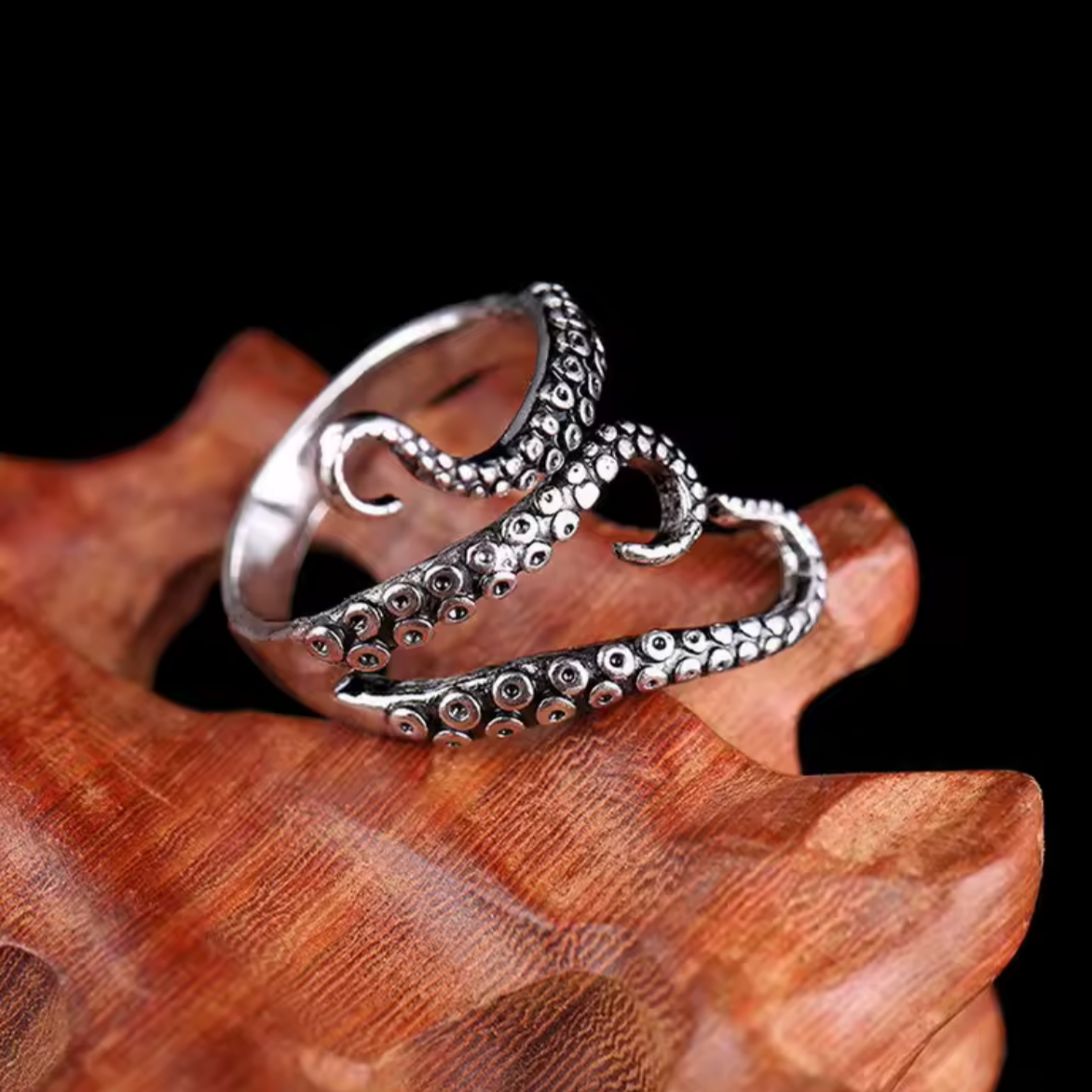 🌀 Dynamiczny, Organiczny Design: Każda z ośmiu macek została oddana z niezwykłą dbałością o detal. Spiralne przyssawki i falisty kształt tworzą wrażenie ciągłego ruchu, a całość sprawia wrażenie, jakby pierścionek był żywym organizmem.