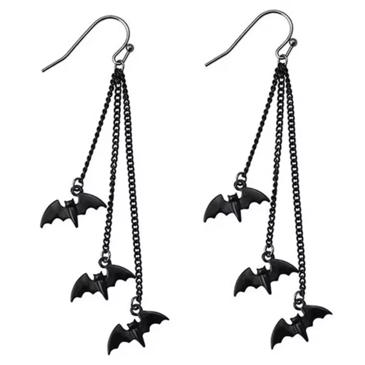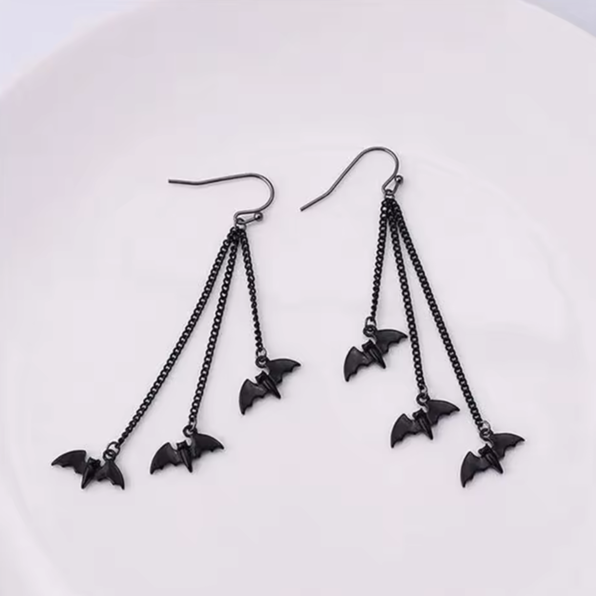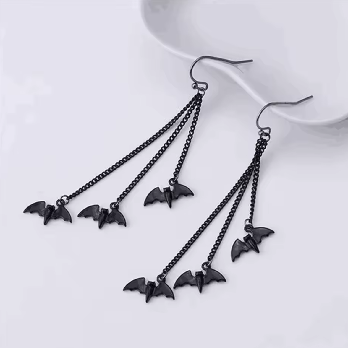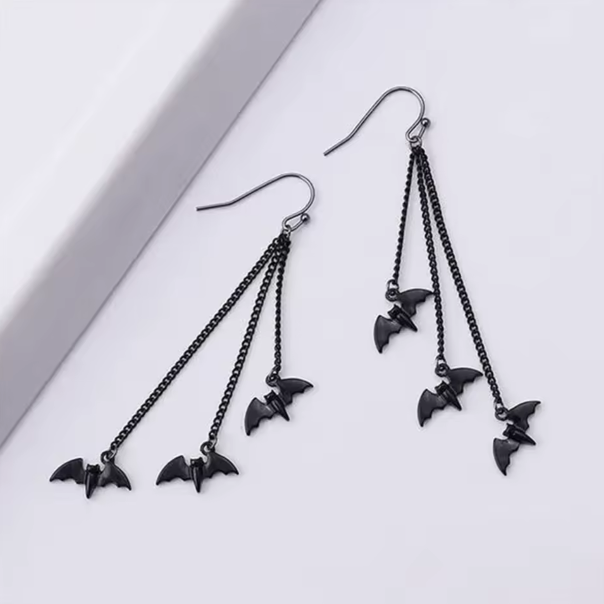"Mroczny Lot" – Długie kolczyki z nietoperzami