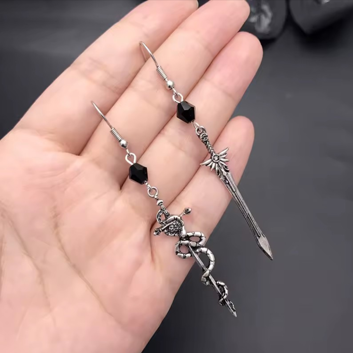 Gdzie ostrze spotyka się z przebiegłością, a siła z mądrością. Te hipnotyzujące wiszące kolczyki to opowieść o odwiecznej walce między siłą fizyczną a duchową mądrością. Miecz – symbol honoru i mocy, oraz wąż – uosobienie transformacji i wiedzy, splatają się w dynamicznej kompozycji, która dodaje Twojej stylizacji głębi i tajemniczości.