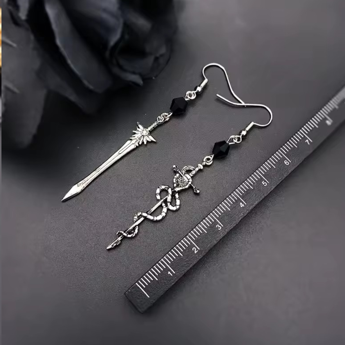 "Walka Przeznaczenia" – Wiszące Kolczyki Miecz i Wąż